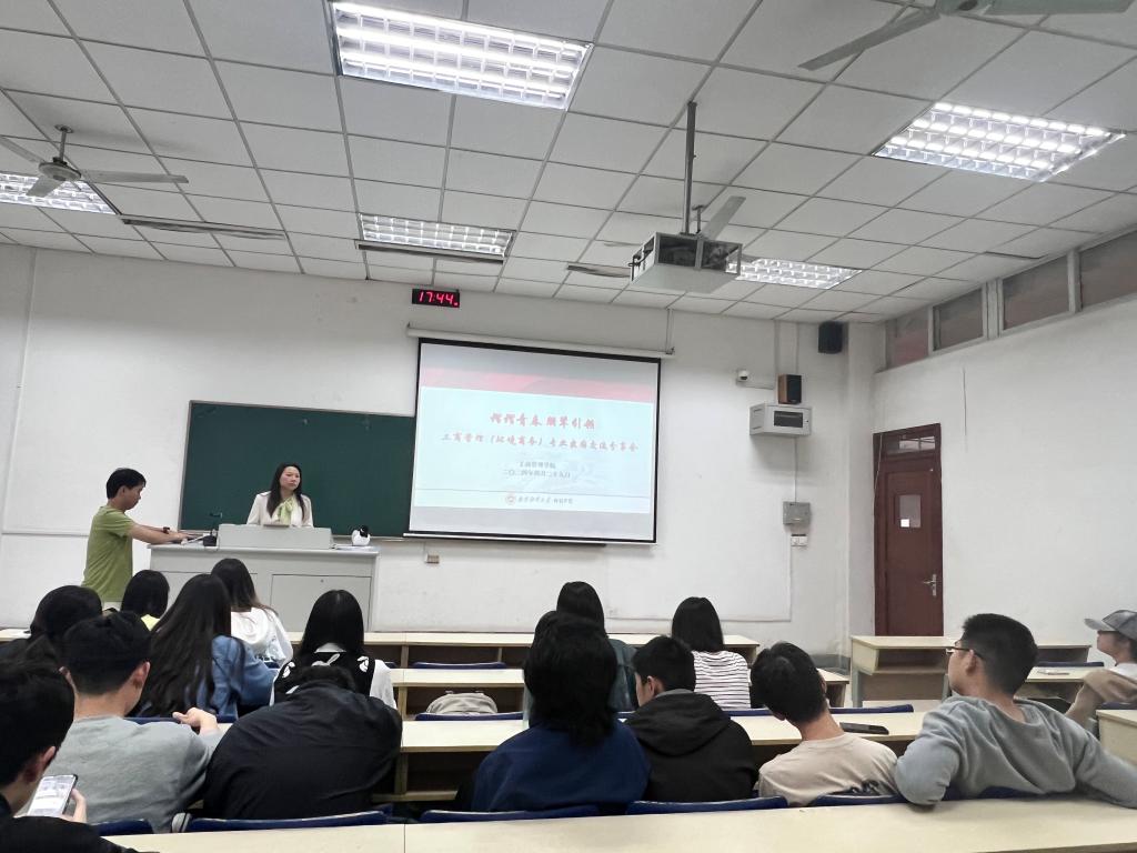 在德济楼105教室开展“熠熠青春 朋辈引领--工商管理(环境商务)专业出国交流分享会”。此次活动邀请了工商合2101班程天乐做分享,工商合项目主任文婷、学院外事秘书喻洁、辅导员常莹以及中加班拟出国学生30余人参加此次分享会。