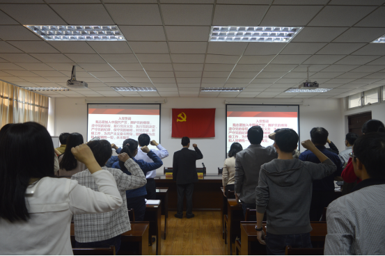 首先,集中观看纪录片《黄大年》。黄大年不计得失、只争朝夕,带领科研团队辛勤奉献、顽强攻关的精神深深地感染了在场的每一位党员同志。接着,重温入党誓词。全体党员同志面对鲜红的党旗,高举右拳,字字铿锵,重温入党誓词,彰显了全体党员不忘初心、牢记使命的坚定政治信念。