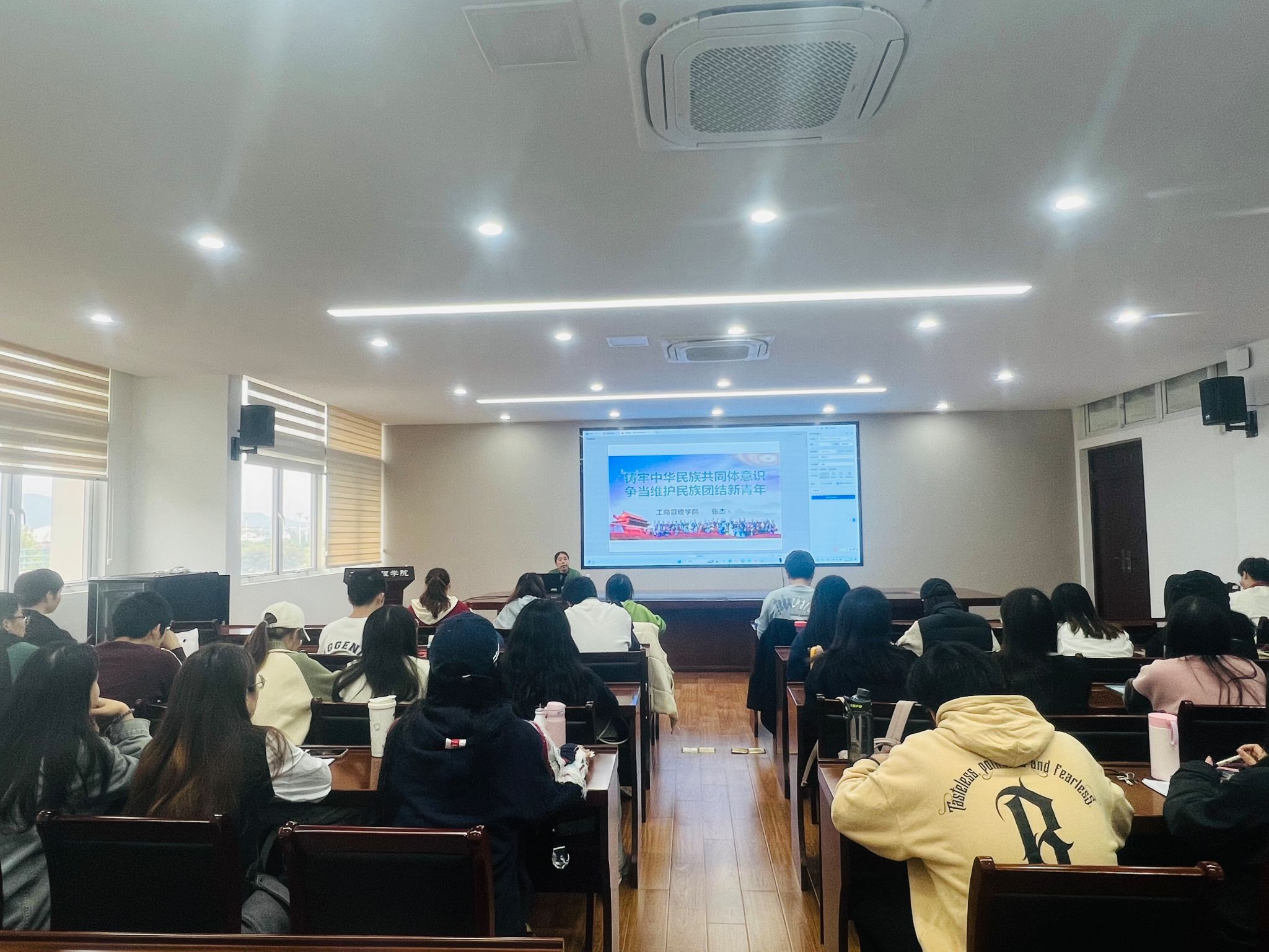 张书记从铸牢中华民族共同体意识的战略意义、把握中华民族共同体意识的丰富内涵、铸牢中华民族共同体意识的实践路径、青年学子的责任与担当四个方面进行详细解读,融入视频、图文资料给学生们带来了一场深刻的学习体验。本次专题党课旨在提高大学生对铸牢中华民族共同体意识重要性的认识,增强民族团结的责任感和使命感。