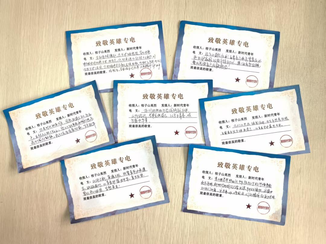 桂子山烈士陵园长眠着抗日战争时期新四军二师五旅十三团在桂子山战斗中英勇牺牲的革命先烈,他们用热血践行了“民族危亡之际,匹夫皆有责”的誓言。活动现场,全体党员庄严肃立,在敬献花篮寄哀思、默哀追思忆英魂、誓词铮铮铭初心等环节后,一场沉浸式“跨越时空致专电”活动架起了跨越时空的精神对话,党员们手持精心设计的“致英雄专电”卡片,以富有历史感的电报方式向先烈们倾诉着新时代的变化与传承的决心。这些电报仿佛穿越了八十载岁月长河,跨越时空界限,将后辈的心声传递到先烈们身边。随后,全体党员缓步绕行纪念碑,在肃穆的氛围中感悟先烈精神,从信仰的传承中汲取红色力量。