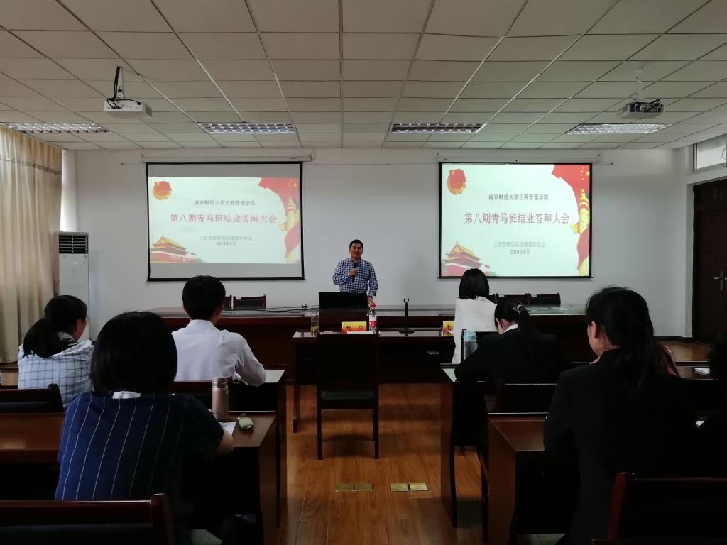 答辩会上,主持人金逸民首先介绍答辩规则,接着各小组按序依次上台展示,介绍本小组成员半年多时间里参加青马班活动,带给他们的思想蜕变、心灵感悟和心得体会,同时表达了对指导老师和工作人员的感谢之情,期间杨华副书记和曾慧娟老师分别向各小组提问。