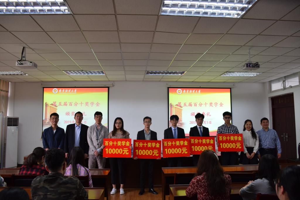 杨华副书记首先介绍“百分十奖学金”和本届奖学金的评比过程,金融学院章冬斌副书记随后宣读了获奖结果。现场嘉宾和领导为五位获奖学生颁奖。