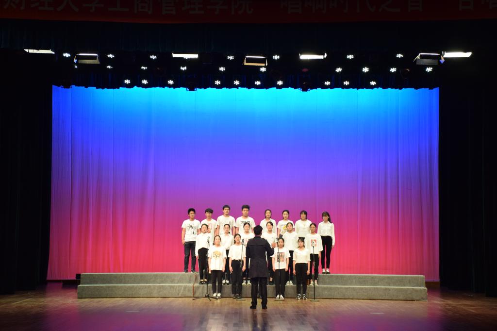 比赛在旅游1701班的歌声中拉开序幕,一首《红星闪闪》为我们展现了新长征路上一代代奋发图强的新景象。人资1701班演唱的《红旗飘飘》激情昂扬,唱出了青年学子对祖国的热爱与自豪之情。工商1702班演唱的《我们走在大路上》表达了对中国特色社会主义道路自信、理论自信、制度自信、文化自信。工商1801班带来的《我爱你中国》、旅游1801班带来的《歌唱祖国》以及人资1801班带来的《我和我的祖国》,将同学们对祖国母亲的爱款款道来,充分表达了对祖国最炽热、最真诚的情感。人资1702班用一首《仰望星空》告诉我们,追梦的道路虽然崎岖,但不懈的汗水与坚持必将带领我们抵达梦想的天空。工商1802班带来的《歌声与微笑》,将幸福的种子通过真诚的歌声洒向现场的每一位观众。工商1701班带来的《国家》将嘹亮的歌声与饱含真情的手语操相结合,整齐划一的动作将“国”与“家”相连。人资1802班带来的《少年中国说》气势磅礴,彰显了新时代青年的豪情与担当。