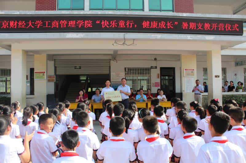 随后,王立平校长对大家的到来表示热烈地欢迎,希望志愿者们在独山镇绿水青山的环绕中陶冶孩子们的情操,帮助孩子们健康快乐地成长,并宣布本次“快乐童行,健康成长”暑期社会实践支教活动正式开营!
