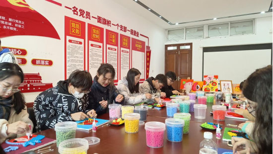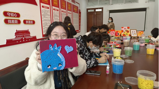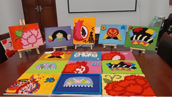 活动伊始,同学们认真聆听毛球画的制作步骤和工具使用方法。后,大家结合“毛球紧凑如榴籽,民族亲热似一家”的主题,通过画、拼、贴等方式将一颗颗小毛球变成了一幅幅寓意深刻,精美雅致的作品。有土家族的特色花纹、有维吾尔族的小花帽,更多的是各式各样的石榴花、石榴籽,这些别致有趣的作品饱含着少数民族学子美好生活的感受与民族团结的深情厚谊