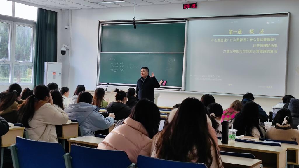 受疫情影响沉寂了一冬的教室又热闹起来。深受学生喜爱的张辅群老师按时到达德济楼114教室,全心投入《运营管理》课程授课;学生上课认真聆听,做好课堂笔记,师生互动积极,面对面地进行学习讨论,线下教学工作井然有序。同时,为了保障暂缓返校学生正常上课,老师们也利用网络视频同步开展线上课堂直播,实现线上线下同步教学。