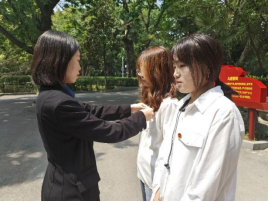 本次活动包括新团员入团仪式、“与团共庆生,奋斗正当时”红色生日会和参观行知园三部分。首先,伴着嘹亮的团歌,学院团委书记张鹏岩为2023年加入中国共青团的两位新团员颁发团章、佩戴团徽。随后,面对鲜红团旗,全体团员右手握拳,手举过肩,在张鹏岩老师的领誓下,以洪亮的声音进行了庄严宣誓。铮铮誓词既是南财学子的青春誓言,更是面对未来考验的信心和勇气。