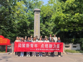 接着,全体师生共同为三位5月4日出生的共青团员举办一场特别的红色生日会。张鹏岩老师为他们送上了精心准备的“五四”生日贺卡,勉励同学们奋力拼搏,在担当中尽责,在尽责中成长,勇于担负起时代赋予青年的重任。共青团员代表李娜同学表示:“很荣幸与共青团一同庆生,我更加清晰认识到作为一名青年人所肩负的责任和重担,青年一代是祖国的未来,我们应当珍惜这一宝贵的时代际遇,勇担历史使命,为实现中华民族伟大复兴而不断奋斗”。最后,全体人员在英烈纪念碑前合影留念,并一同前往陶行知纪念馆参观学习。