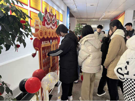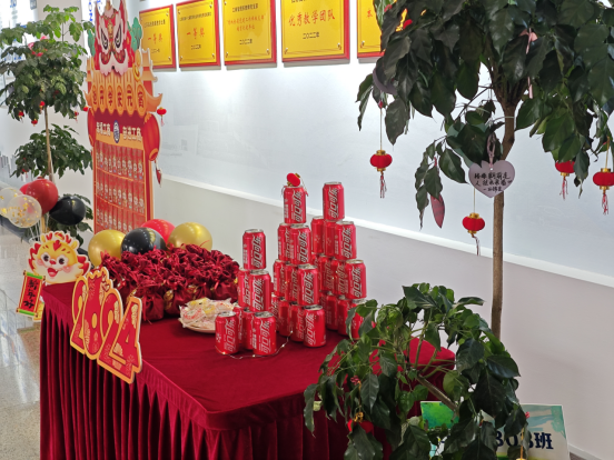 的同学们纷纷收到了来自学院准备的红包,印有“开学快乐”字样的可乐和苹果都是对新的一年可喜可乐、平安顺遂的美好期盼。除此之外,学院还为同学们准备了元宵福团,希望大家在新的一年有一个甜蜜幸福的开始。同学们轻轻咬开软糯的福团,带着这份甜蜜幸福翻开大学生活的新篇章。元宵节,点花灯,学院班级树也挂上了小红灯笼,灯火辉煌,盏盏红灯融化了寒冷风霜,承载着春天的祝福与希望。