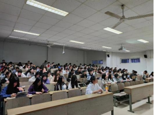 党委书记张杰主持,党委副书记尹海燕、2021级人力资源管理和旅游管理专业全体同学参加讲座。