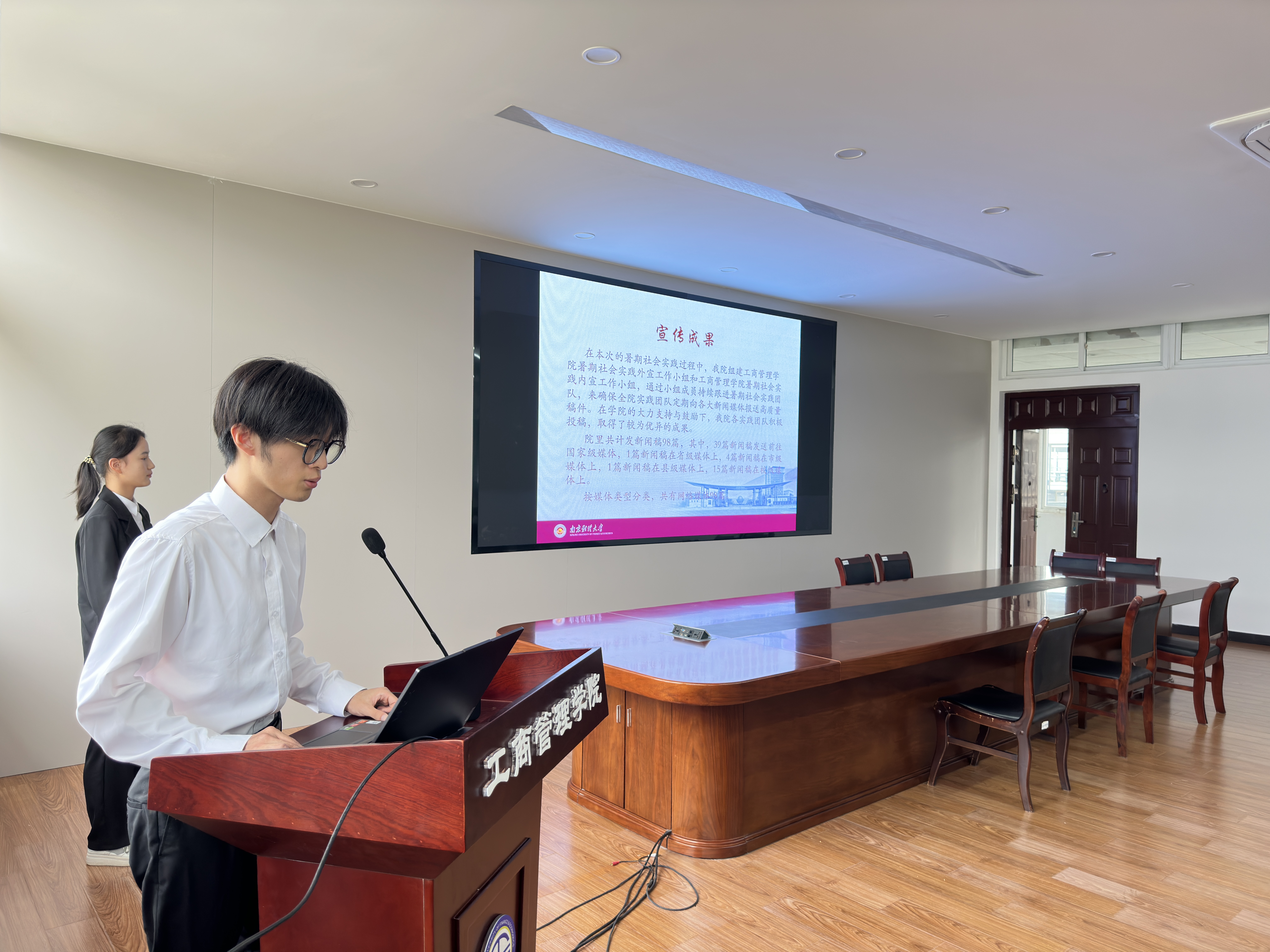 活动伊始,院学生会主席顾梓骞从人员投入、工作安排、宣传成果等方面对本年度暑期社会实践工作进行了系统的总结,向同学们展示了暑期社会实践的优秀成果。院团委书记赵雪老师分别宣读了院优秀团队、优秀调研报告、先进个人和优秀通讯员等获奖名单。暑期社会实践优秀团队代表段沛妤、顾晨和号境在三位同学进行了实践经验分享。其中,段沛妤带领的“德昂光影探秘者”调研团队前往云南省德宏州出冬瓜村进行实地调研,深入探索农文旅融合的旅游新兴产业发展模式,促进文化传承、民族团结、乡村振兴;顾晨带领的“良‘源’广进,‘兴新’向荣”调研团队通过与企业负责人面对面交流,探索创业项目的融资发生机制,进而对政府的政策制定和创业者的创业及获取融资路径方面提出对策建议;号境在带领的“智绘非遗”暑期社会实践团队,通过探索非遗文化保护传承与开发利用的有机融合路径,聚焦旅游智慧科技和数字智慧营销,实现文化资源最大化利用与区域经济协同发展。