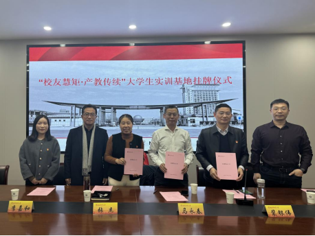 在与会嘉宾的见证下,校方与校友代表共同签署了“筑梦工商”校友奖助学金捐赠协议,并为“校友慧炬·产教传续”大学生实训基地揭牌。