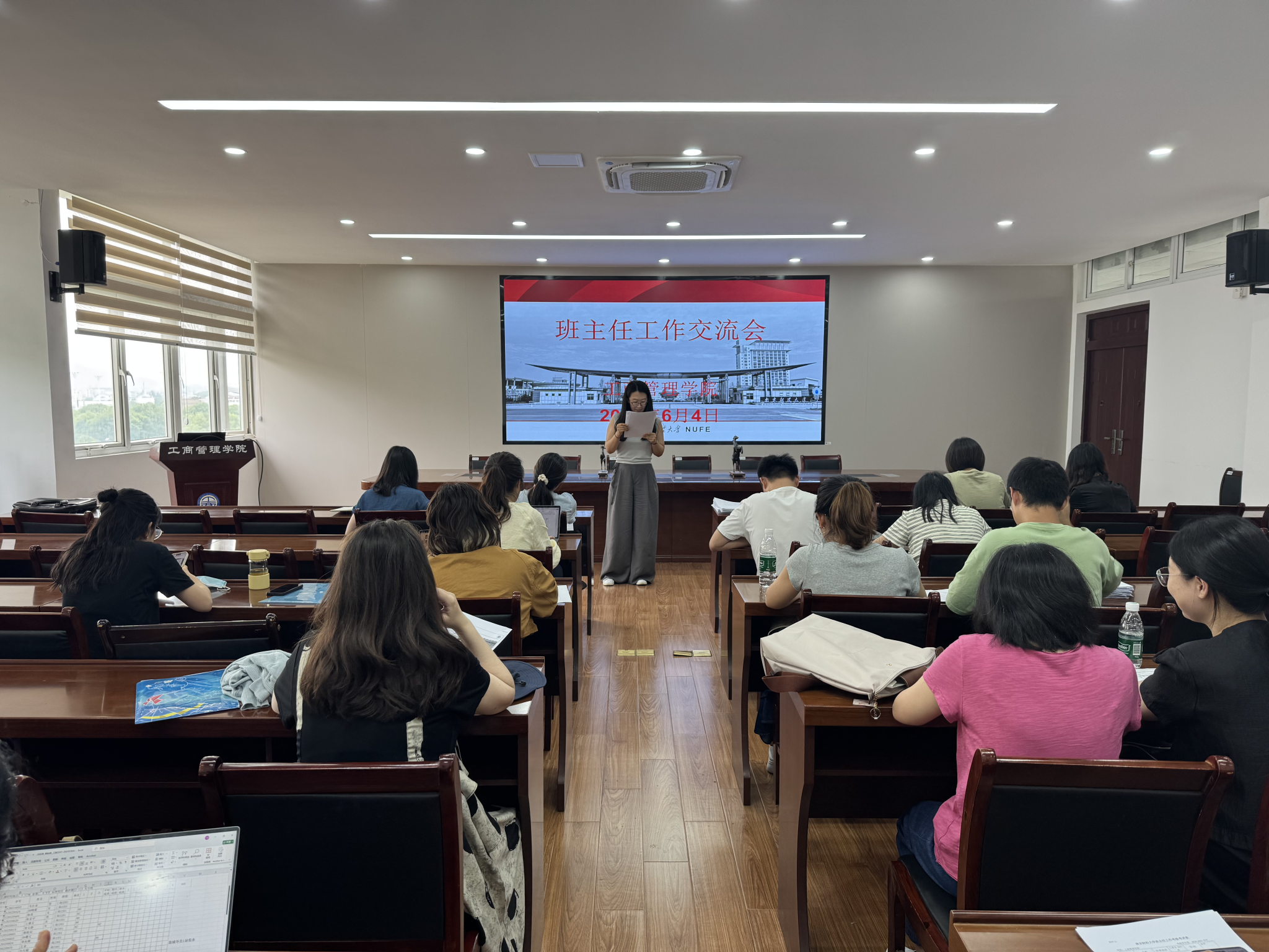 在德济楼408会议室召开2024-2025学年班主任工作述职交流会,对学院29个班级的班主任工作开展全面评议。学院党委书记张杰、副书记尹海燕,学工办主任邱祥霞、教师代表及全体辅导员参会,会议由院党委副书记尹海燕主持。