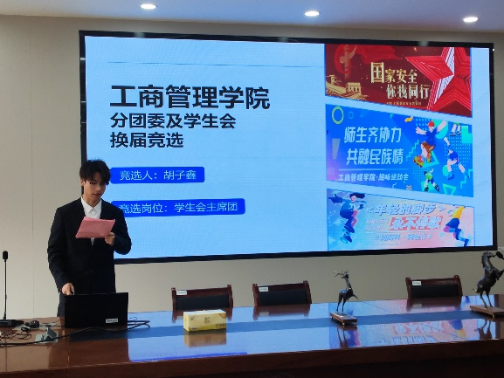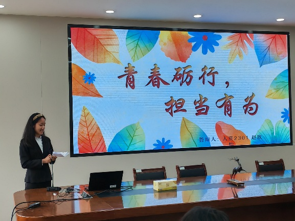 第二十三届分团委、学生会换届竞选答辩大会在德济楼408会议室举办。院党委副书记尹海燕、分团委书记赵雪,全体分团委副书记、学生会主席团成员及各部门代表出席会议。