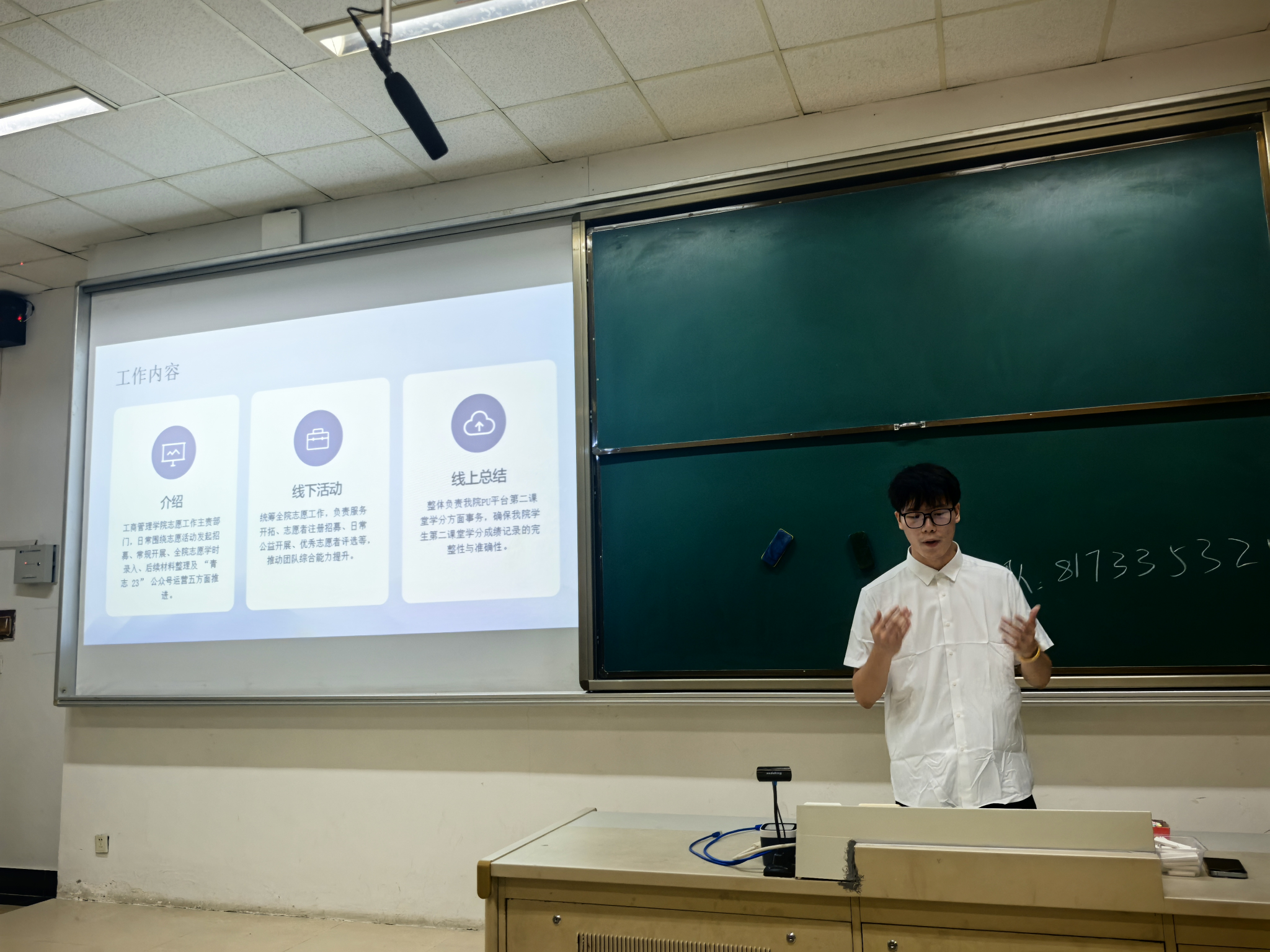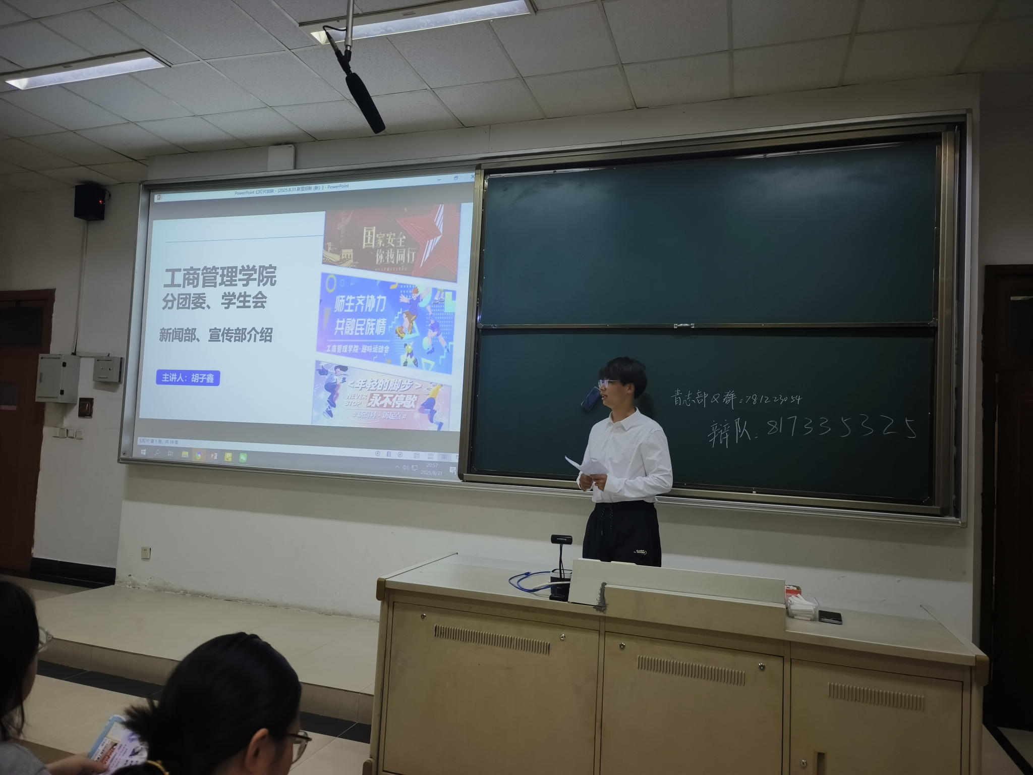 最后,院分团委、学生会各部门负责人依次上台进行招新宣讲,鼓励新生积极加入团学组织,在课外活动中拓展兴趣、锻炼能力。