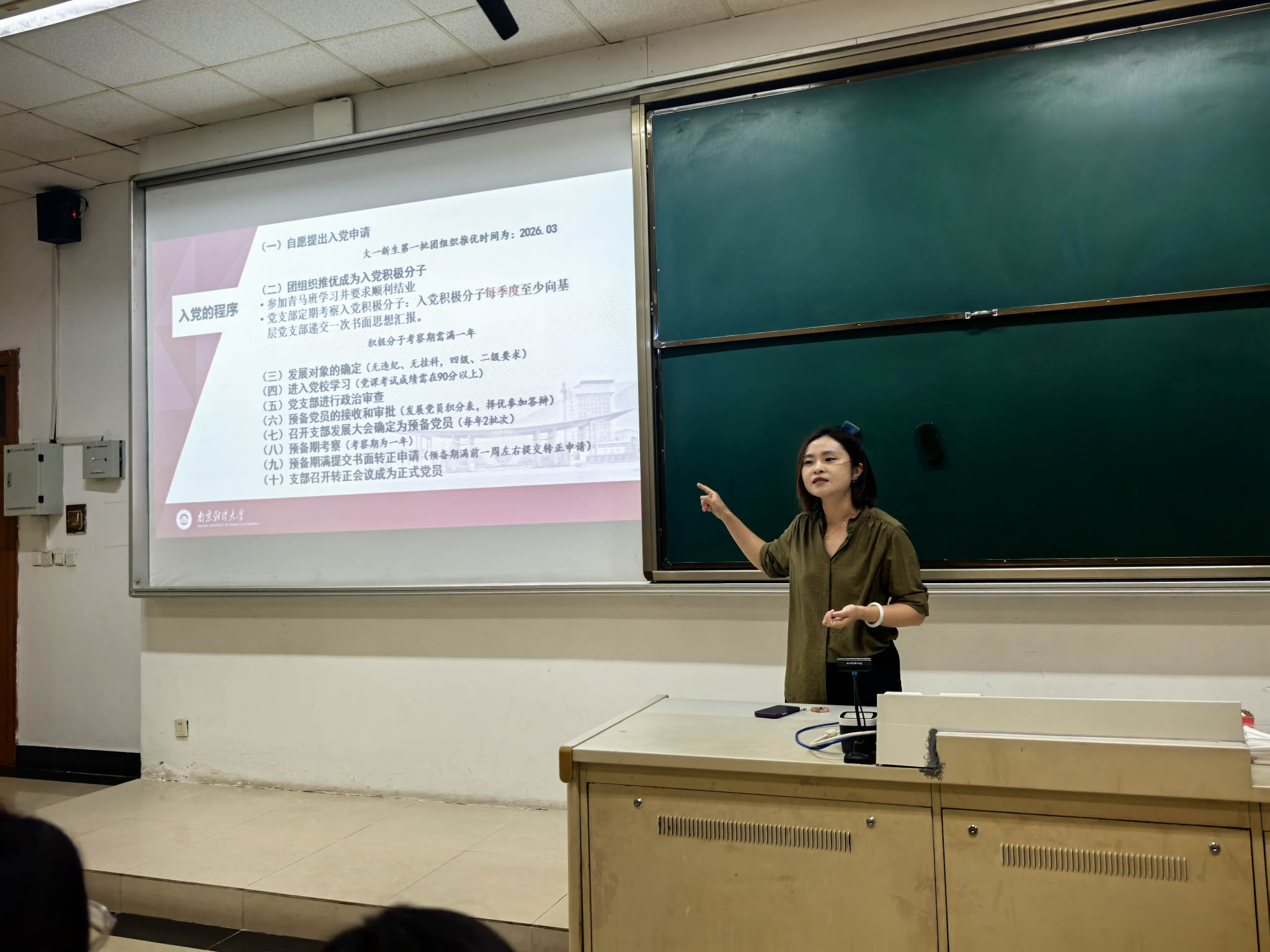 冯玲老师以《启梦·求知·成长》为题就班级管理、集体协作与行为规范等方面展开说明,帮助同学们树立纪律意识和集体观念。赵雪老师作《我的青春我的团》新生团课,鼓励同学们积极向团组织靠拢,在集体中锻炼成长;赵菲老师围绕“入党要求与程序”展开入党启蒙教育,生动阐释了理想信念对人生成长的重要性,并鼓励同学们在学习生活中要以党员标准严格要求自己,主动参与志愿服务与社会实践,在奉献中实现人生价值。