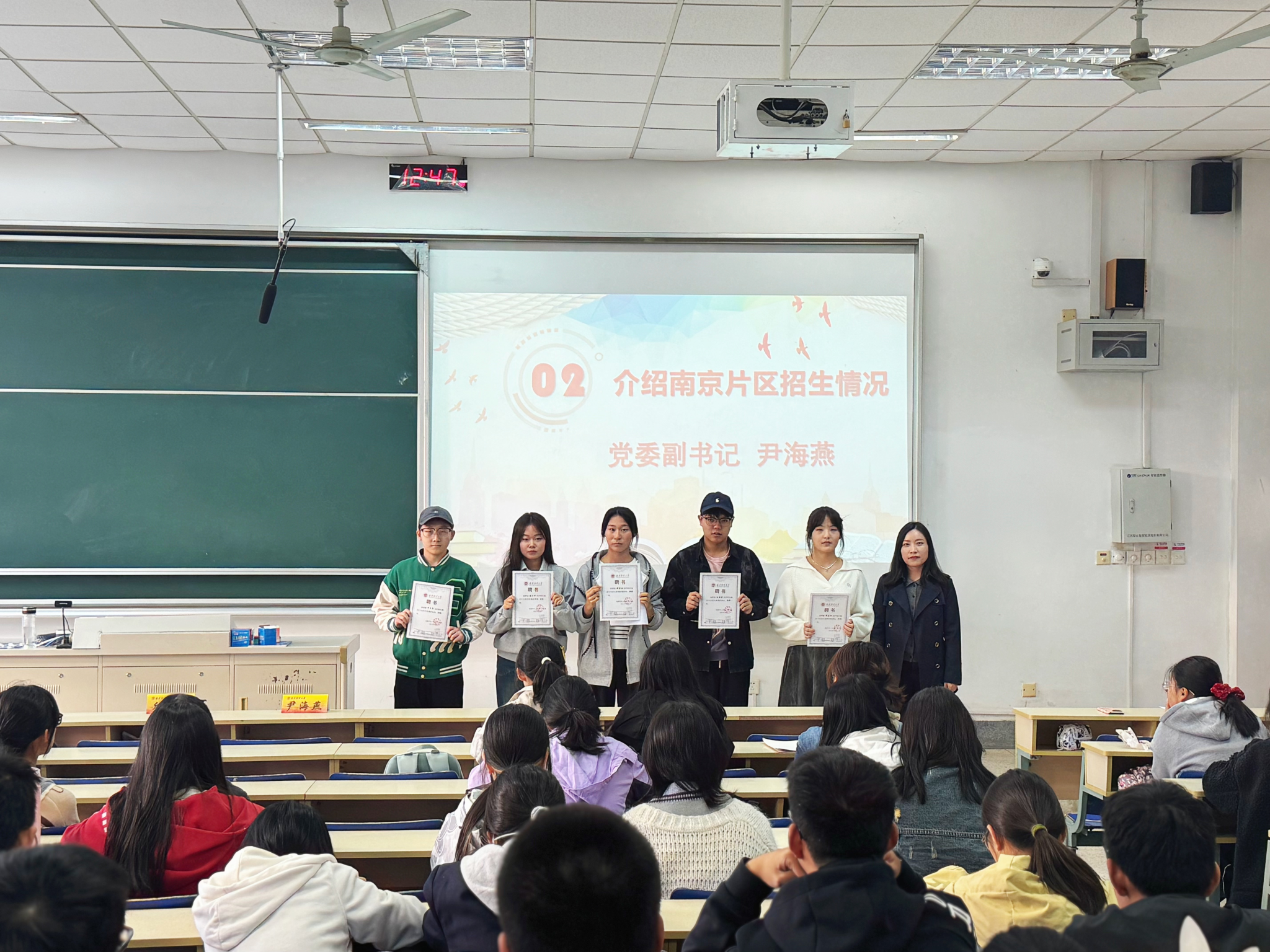 党委书记张杰、党委副书记尹海燕、学工办主任邱祥霞,南京片区招生助理团全体成员及2025级南京籍新生代表参会。