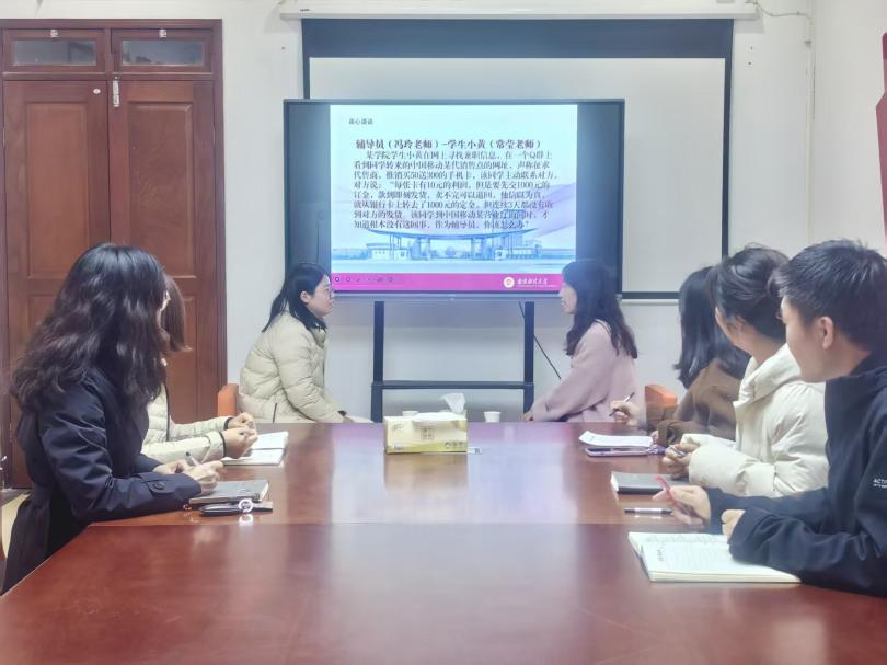 本次院赛紧密对标省赛、校赛流程,设置“案例研讨”与“谈心谈话”两大环节,全面考察辅导员的理论功底、分析研判、应急处突、教育引导和解决实际问题的综合能力。在“案例研讨”环节,参赛辅导员通过赛前抽签确定AB角与案例题目,采用“你提问,我回答”的形式展开。选手们在提问中展现洞察力,在应答中体现专业性,充分展示了扎实的业务基础和清晰的育人思路。在“谈心谈话”环节,参赛选手模拟真实情境,与同事扮演的“学生”开展谈心谈话,面对学业压力、人际矛盾、生涯迷茫等具体问题,进行耐心疏导和思想引领。本次院赛创新采用“新老结对、实战演练”的比赛模式,通过互评打分选拔出预赛优胜者,再分别与院党委副书记尹海燕进行终极对决。整场比赛组织严谨、节奏紧凑、氛围热烈,达到了以赛促学、以赛代练、以赛提能的预期目标。