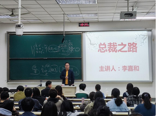 企业管理92级校友、布衣宰相猎头品牌创始人李嘉和,于德济楼101教室为同学们作主题为“总裁之路”的分享会。此次分享会由成人动漫