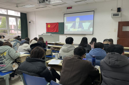组织全体师生在仙林校区德济楼会议室、教室集中观看学校第一期工作进展通报会。
