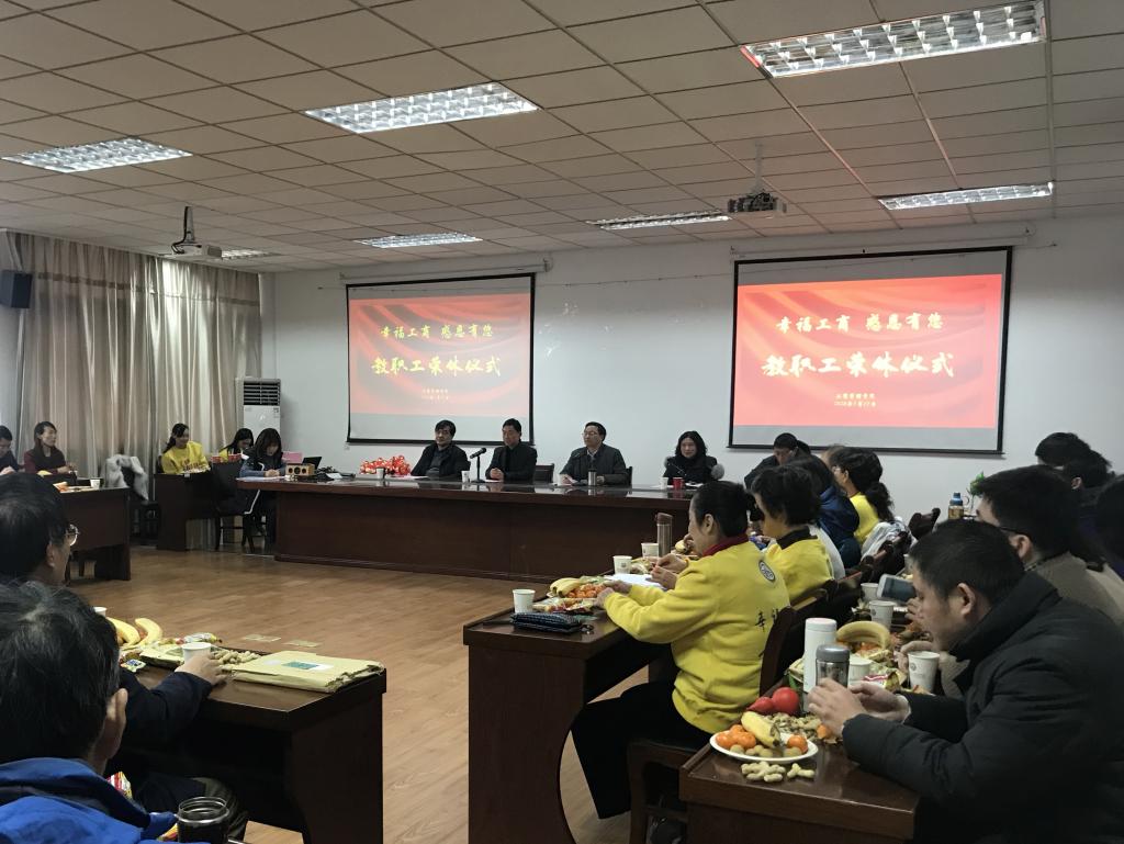 2019年度光荣退休教师王瑛教授、周敏副教授、嵇杭老师以及全体教职工共同参加。仪式由万绪才书记主持。