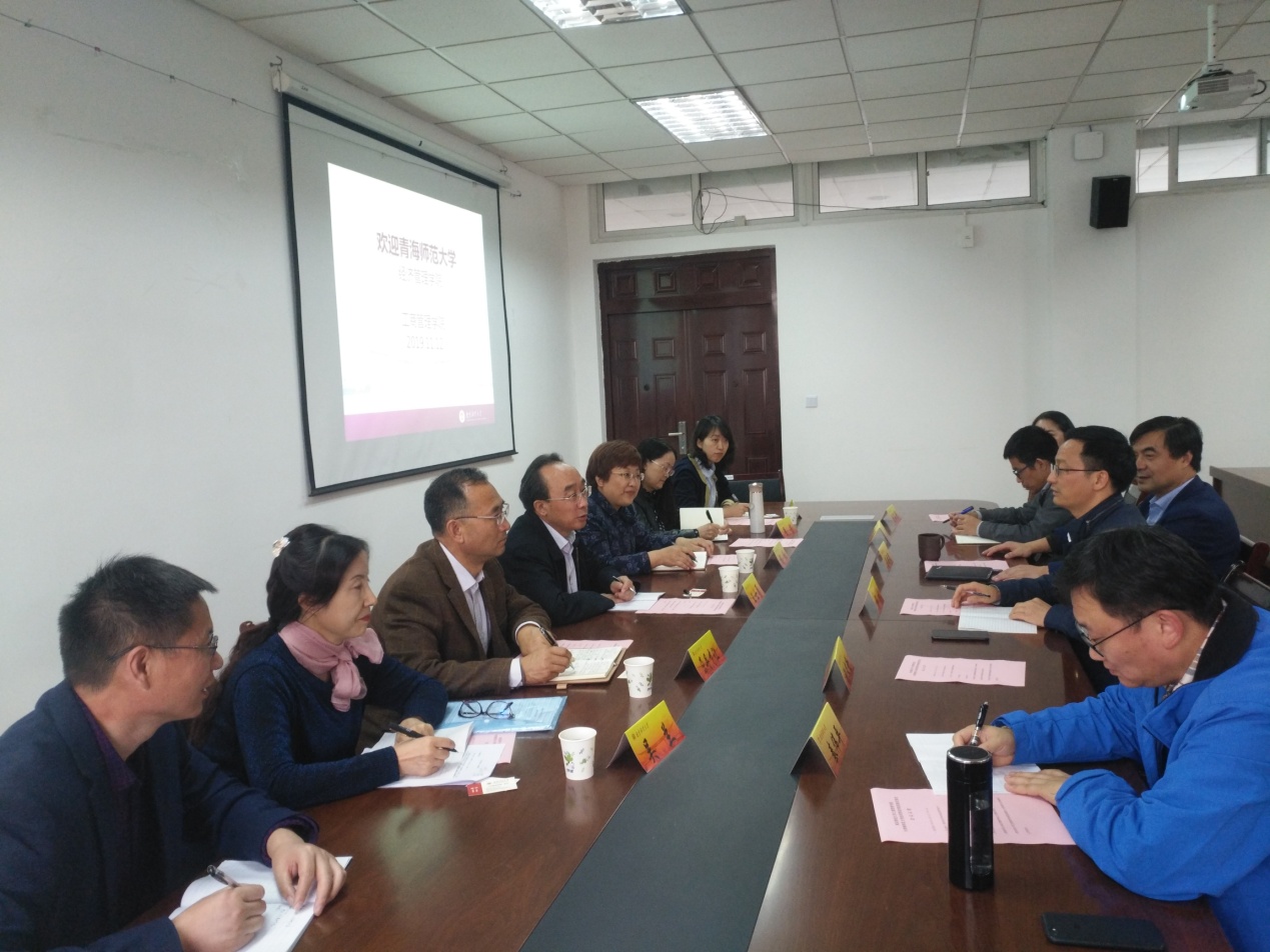 的热情接待表示感谢,并介绍了青海师范大学经济管理学院的历史沿革与发展现状、师资力量、教学科研等情况。之后,双方就学科建设、人才引进与培养、课程设置、实验室建设、办学理念等方面分享了各自的经验与互动讨论,并表达了在未来进一步交流合作的意愿。