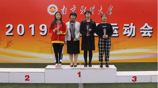 副校长时现为获得女子团体总分前三名的代表队颁奖(右一)