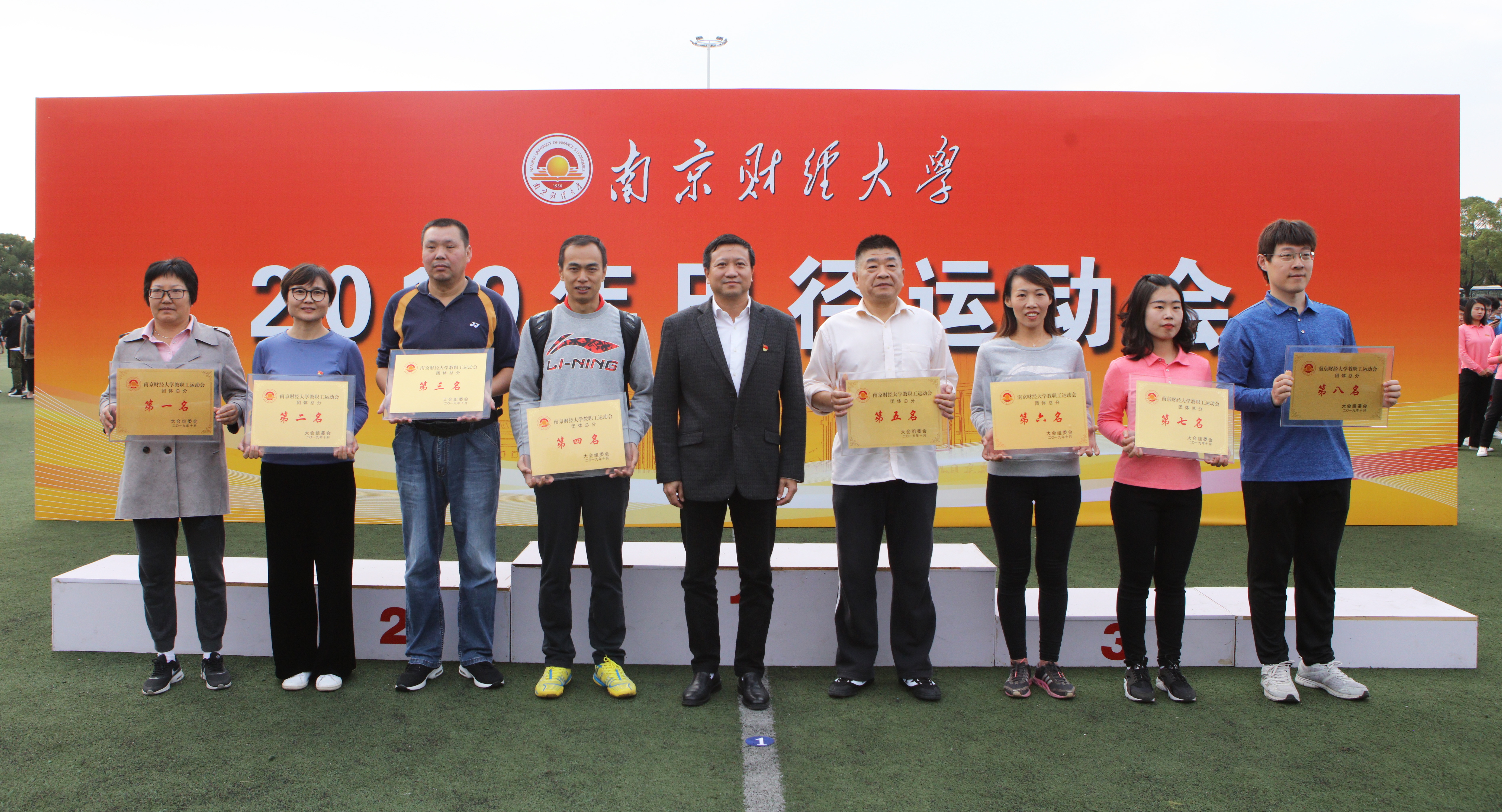 党委书记张利民为获得教工团体总分前八名的代表队颁奖(右三)