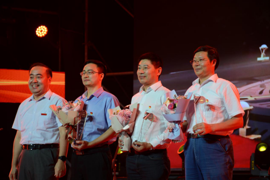 校领导班子成员为获得最佳组织奖的学院颁奖(右二:杨林院长代表成人动漫