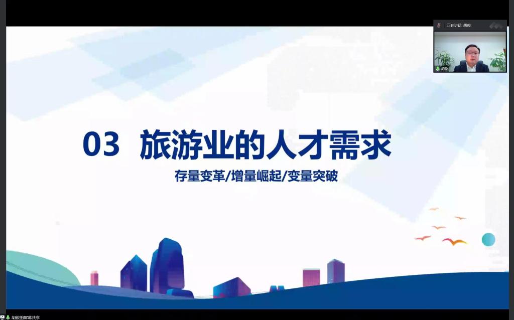 旅游管理专业2003届毕业生胡俊经理为旅游2201班全体同学作了题为“树立正确学业择业观,迈好人生关键一步”的线上讲座,讲座由成人动漫