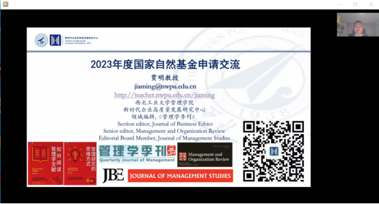 邀请,西北工业大学管理学院副院长贾明教授为学院全体师生带来一场主题为“2023年度国家自然基金申报交流”的线上学术讲座。讲座由成人动漫