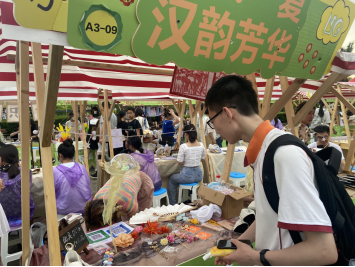 首届创意集市。突如其来的大雨并没有浇灭同学们的热情,美食、表演……让同学们领略了丰富多彩的大学校园生活。