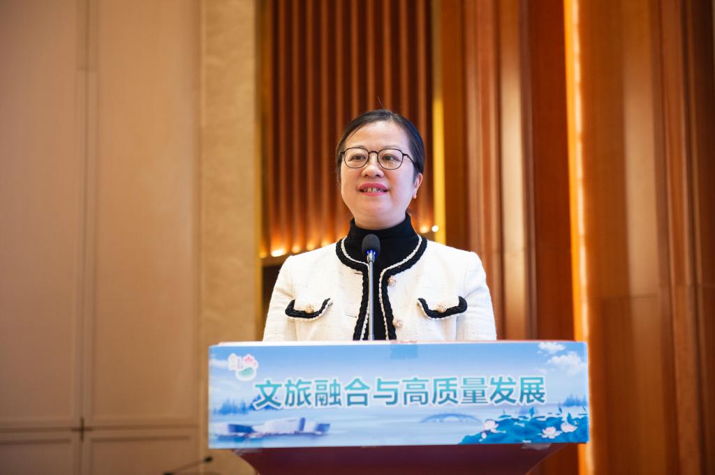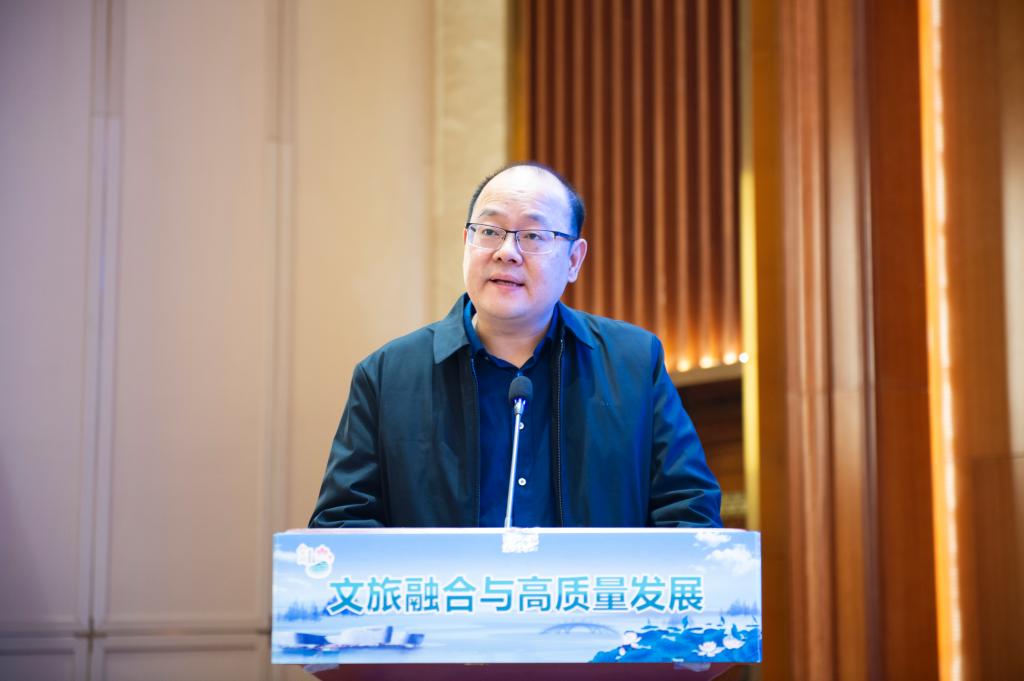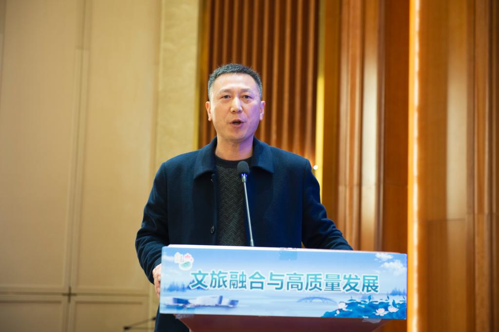 院长万绪才教授作“文旅融合助推旅游高质量发展逻辑框架及实践分析”主旨演讲,深入分析了文旅融合与高质量发展的逻辑框架,并提出了文旅融合助推旅游高质量发展的战略性举措。南京旅游职业学院副院长洪涛、江苏天目湖旅游股份有限公司总裁助理尤旭辉、金湖县人民政府副县长张云辉、江苏理工学院文化与旅游学院院长演克武分别作了题为“酒店行业高质量发展创新与实践”、“卓越绩效模式推动旅游企业高质量发展”、“杉荷景秀、美丽生金——金湖国家全域旅游示范区建设实践”和“长三角一体化背景下风景道优化路径、制度与评估方法”的主旨演讲。