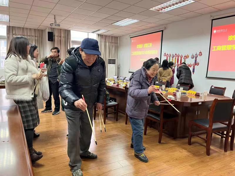 教师们的活力与智慧。紧接着,学院领导为每位离退休教师发放了新年慰问红包和象征着团圆美满的腊八粥,表达了学院对老教师的关心和祝福。