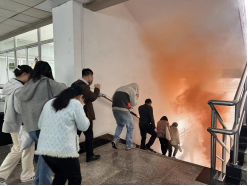 开展逃生演练,增应急能力。在保卫处的组织下,学院开展了消防逃生演练,在德济楼楼梯上燃放烟雾弹,模拟火源发生,并现场组织师生安全疏散逃生。保卫处消防科工作者人员还详细讲解了灭火器的种类和使用方法,学院书记、院长带领师生一一实践体验了灭火器的使用。