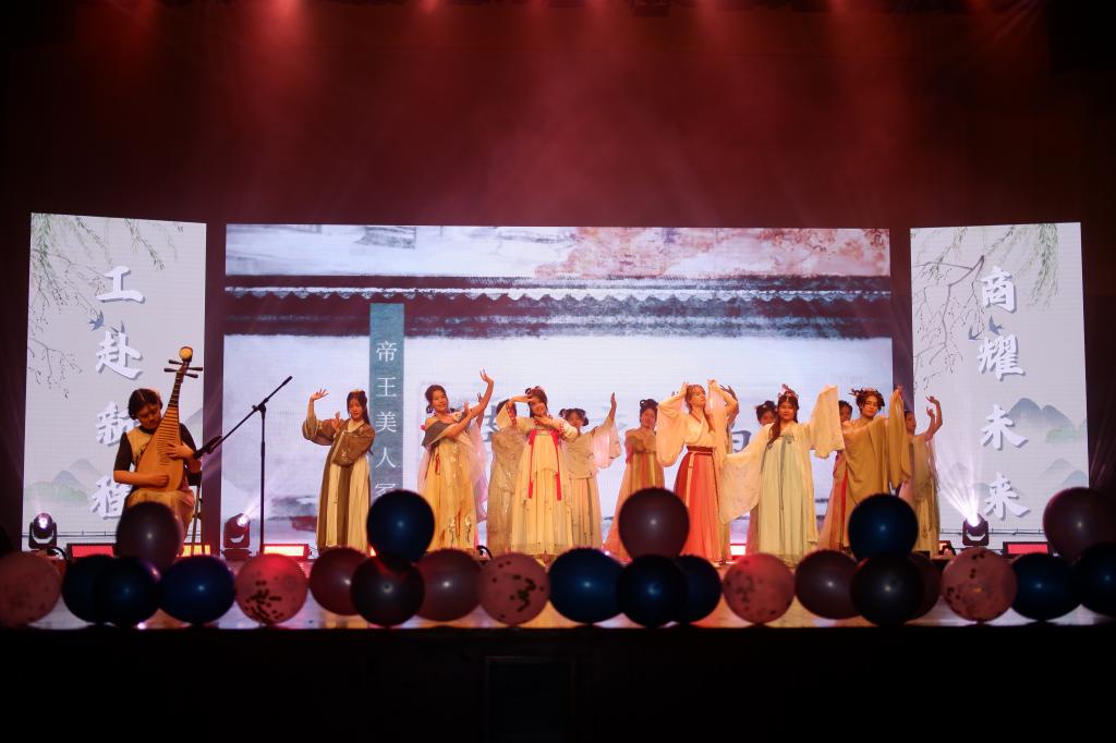 第二篇章:商海泛舟,破浪前行。舞蹈《Diamond》热烈而张扬,跃动的舞姿和飞扬的青丝也如它的名字一般熠熠生辉;音乐剧串烧《飞鸟和鱼》《Guns and ships》《Think of me》为观众们献上一场视听盛宴的狂欢,每一个音符、每一个舞步都闪耀着独特的光彩;情景剧《E起光影之舞,I上青春之约》演绎出的大学时光,告诉所有人在平凡璀璨的日子,光投下了过去的影子,照亮未来前进的道路;相声《我是好男人》用幽默诙谐的语言为观众们介绍“好男人”的种种特质,让大家在轻松愉快的氛围中感受到了中华传统文化艺术的魅力。风吹起阵阵涟漪,这一路走走停停,歌曲《起风了》勾起在场观众关于那个盛夏的记忆。