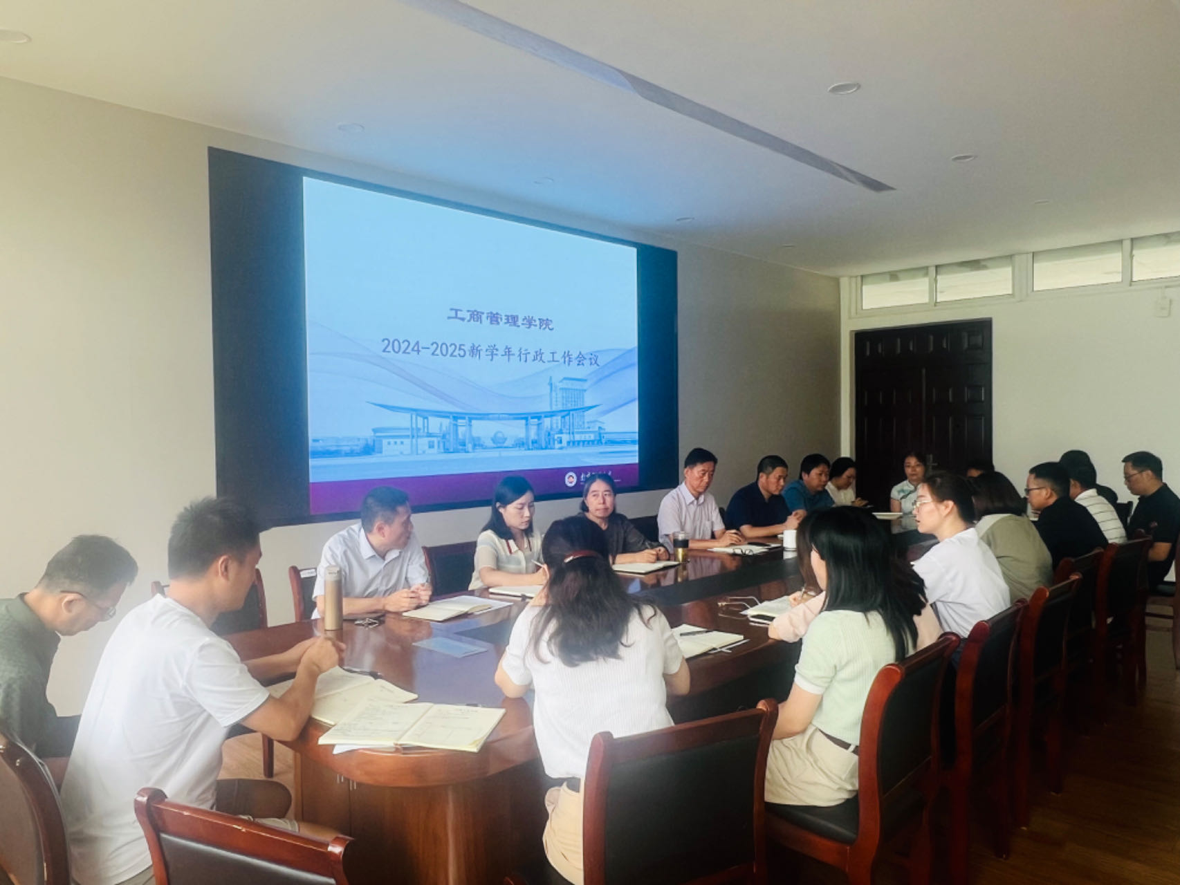 在德济楼408会议室召开新学期行政工作会议。会议由学院党委书记张杰主持,全体行政人员和各系系主任参加了本次会议。