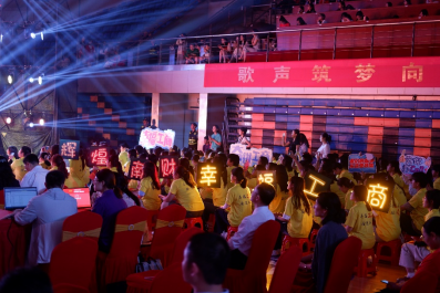 为组织本次活动,学院党委、团委高度重视,为合唱团提供了良好的排练环境和必要的物资保障,并邀请专业的声乐老师现场教学指导以及化妆团队跟妆。赛前,师生们自主有序地进行开嗓练习,确保在比赛中能够发挥出最佳水平。除此之外,学院的观众们也早早地来到了现场,手举“辉煌南财,幸福工商!”的闪亮灯牌,齐喊嘹亮的口号为成人动漫