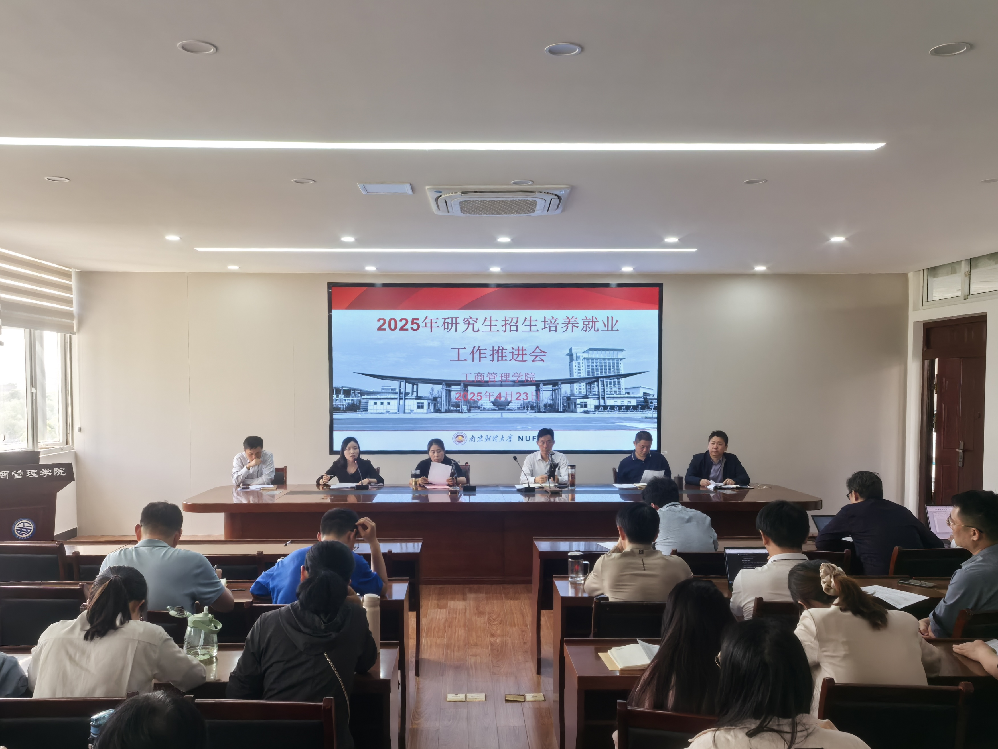 在德济楼408会议室召开2025年度研究生招生培养就业工作推进会。会议由院党委书记张杰主持,全体院领导、硕士研究生指导教师、研究生任课教师、辅导员及研究生秘书参加了此次会议。