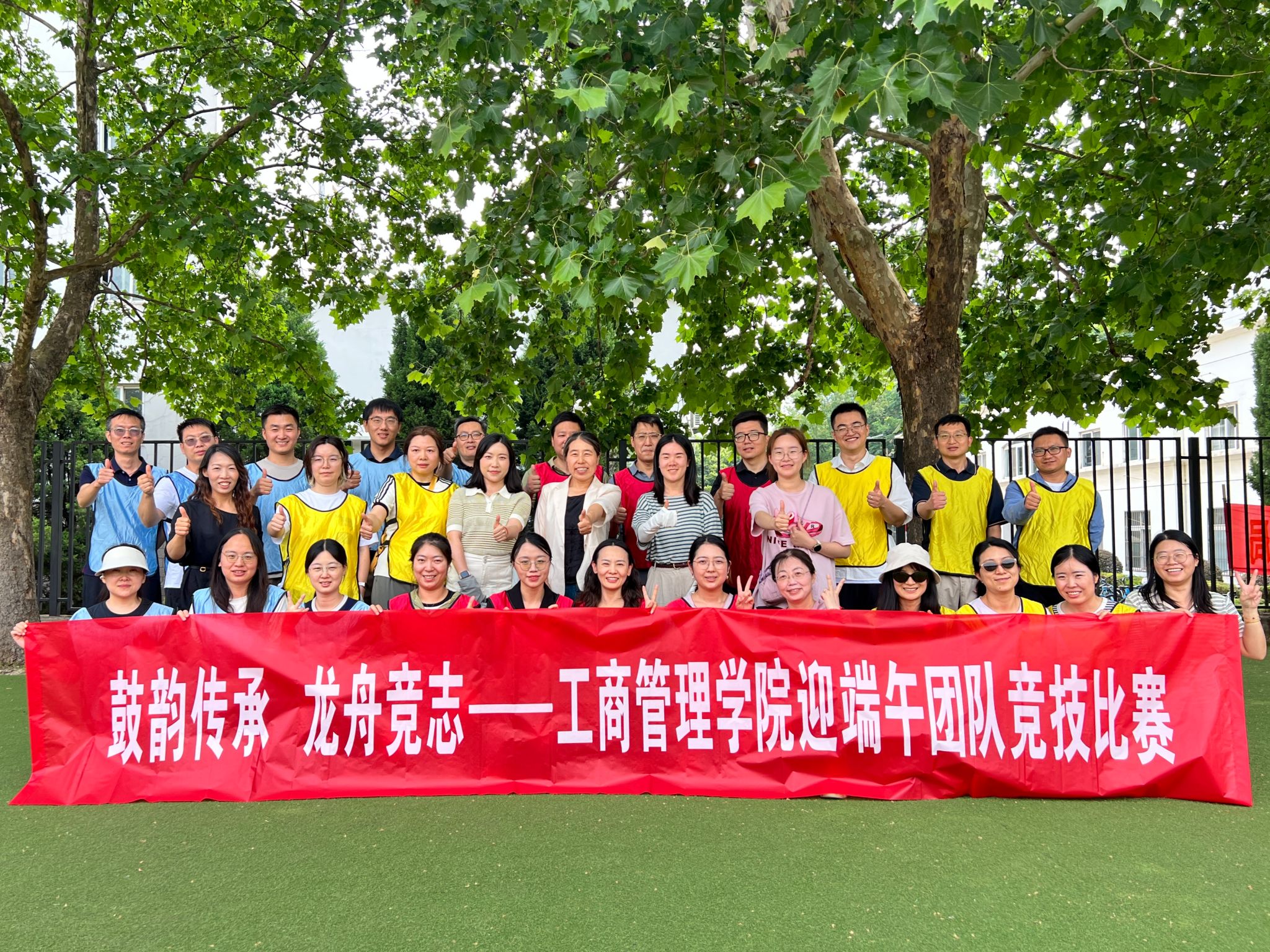 在中苑操场举办“鼓韵传承 龙舟竞志”教职工迎端午团队竞技比赛。院党委书记张杰、副书记尹海燕出席活动,工商管理系、人力资源管理系、旅游管理系三支教师代表队同台竞技,在同心鼓、旱地龙舟两大项目中展开趣味比拼,以别样形式共庆端午佳节。