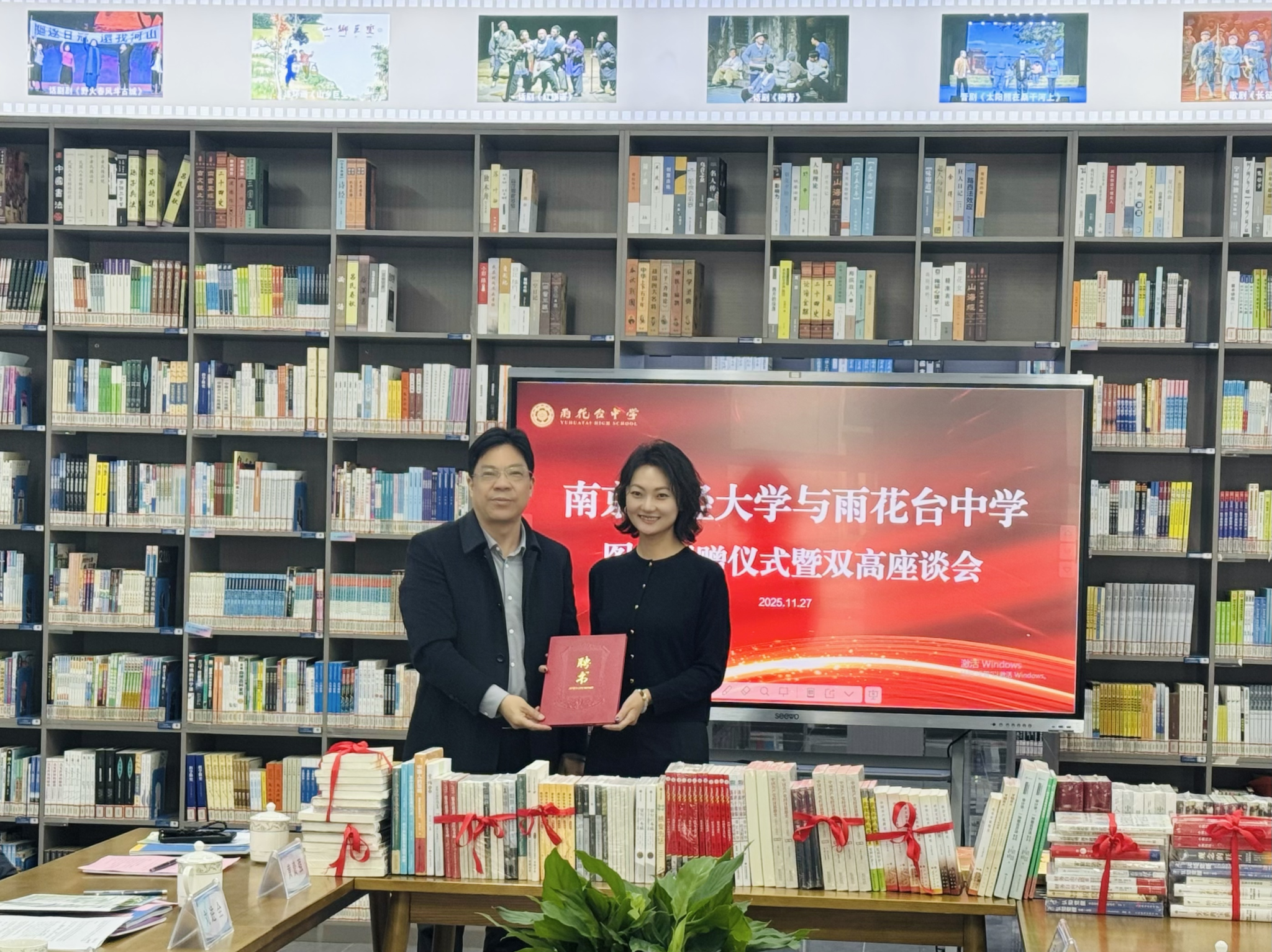 11月27日上午,校党委常委、副校长刘衍民一行赴南京市雨花台中学开展财经素养图书角共建暨双高座谈交流会活动。校学生处副处长、招生办主任全真真,南京招生组组长、成人动漫