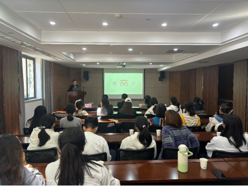 旅游管理专业的发展情况。随后,南京旅游集团组织人事部部长徐苏媛为同学们详细介绍了集团的发展历程、取得的成就、主要业务板块以及员工发展等情况。在交流环节,学生们展现出极高的参与热情,积极与徐部长互动,并就旅游行业的发展趋势、职业规划等话题进行了深入交流。