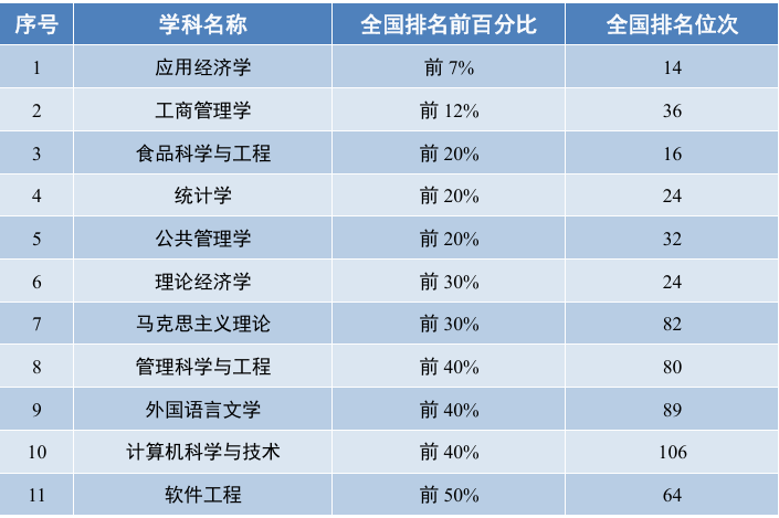 是一所以经济管理类学科为主,经济学、管理学、法学、工学、理学、文学、艺术学等多学科支撑配套、协调发展的江苏高水平建设大学,软科多次评价为全国财经类高校前十名。