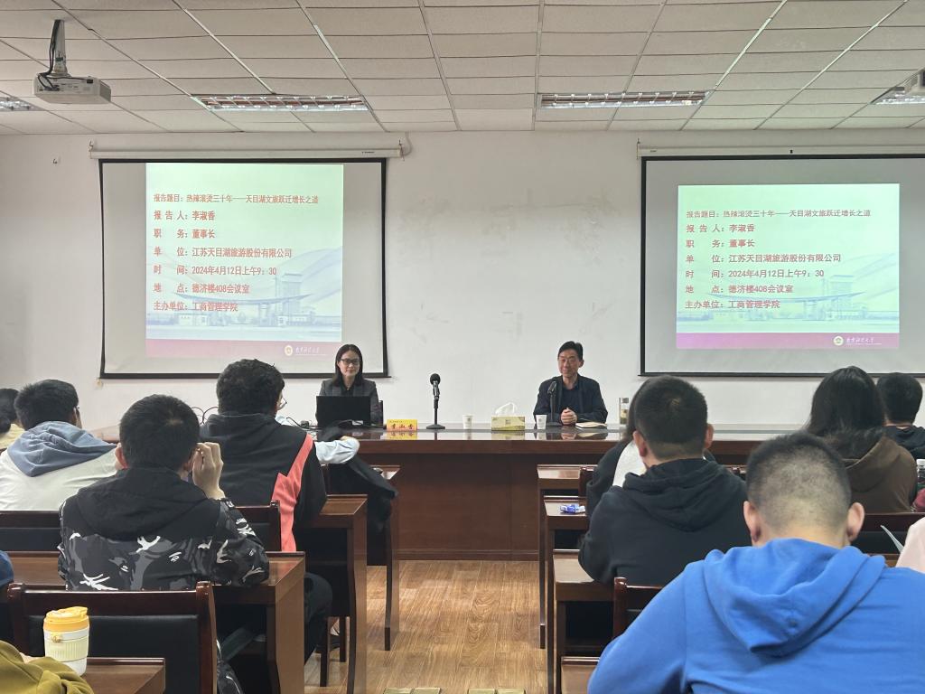 仙林校区德济楼408会议室作了题为“热辣滚烫三十年——天目湖文旅跃迁增长之道”的讲座。讲座由成人动漫