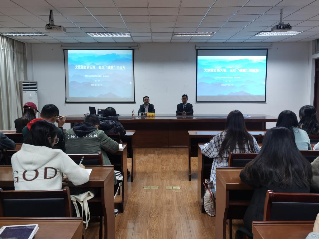 仙林校区德济楼408会议室作了题为“文旅融合新天地,且以‘破题’共远方”的讲座。讲座由成人动漫