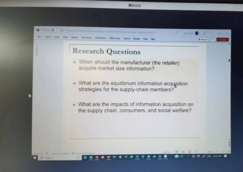 陈静教授首先强调需求信息获取的重要性:需求信息是商业决策的起点,需求信息的准确性会影响商业决策的有效性;由于信息不对称在供应链中的逐级放大效果会产生牛鞭效应。并指出快时尚产品和季节性产品由于产品较新获得准确的顾客需求信息是有困难的,但利用大数据和区块链等方式可以解决这一问题。对生产商的双渠道(直销渠道和零售渠道)的需求信息获取策略进行研究发现,有趣的是,在供应链条件下生产商和零售商既有竞争又有合作关系,因此会产生信号博弈的问题。通过模型构建和博弈分析得出以下结论:一是即使获取信息不需要成本,双渠道中的制造商和零售商可能都不愿意获取信息;二是当制造商的直销渠道高效时,才会获取需求信息;三是信息获取可以提高供应链效率,但可能并非使供应链所有成员都获益,应该需要一份合同或其他机制来确保信息的正确共享。