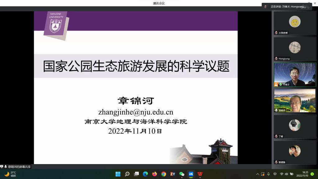 邀请,南京大学地理与海洋科学学院教授章锦河通过腾讯会议作了题为“国家公园生态旅游发展的科学议题”的讲座。讲座由成人动漫